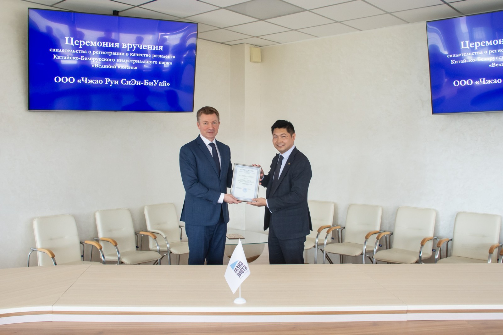 2025年8月29日,中白工業(yè)園隆重舉行新一批居民企業(yè)入駐儀式。園區(qū)管委會第一副主任列別江采夫出席儀式,并向宇宙科技創(chuàng)新有限責(zé)任公司與招瑞中白有限責(zé)任公司的代表正式頒發(fā)居民企業(yè)證書。