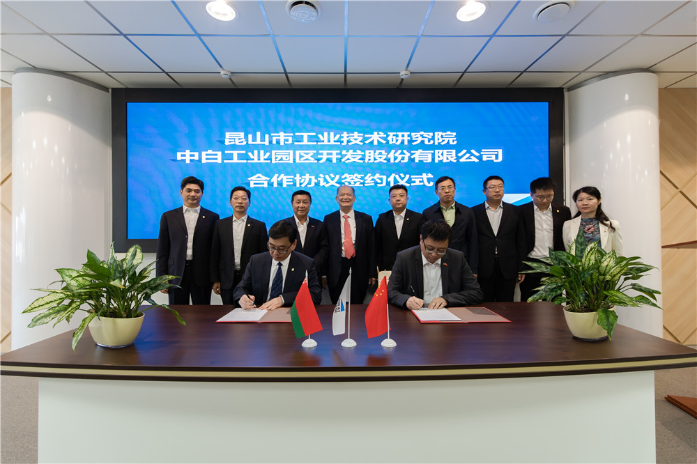 2019年6月14日上午,中白工業(yè)園區(qū)開發(fā)公司CEO胡政在綜合辦公樓會見昆山市委書記杜小剛,并共同見證開發(fā)公司副總經(jīng)理任飛與昆山市工業(yè)技術(shù)研究院(下稱“工研院”)總...201906-17