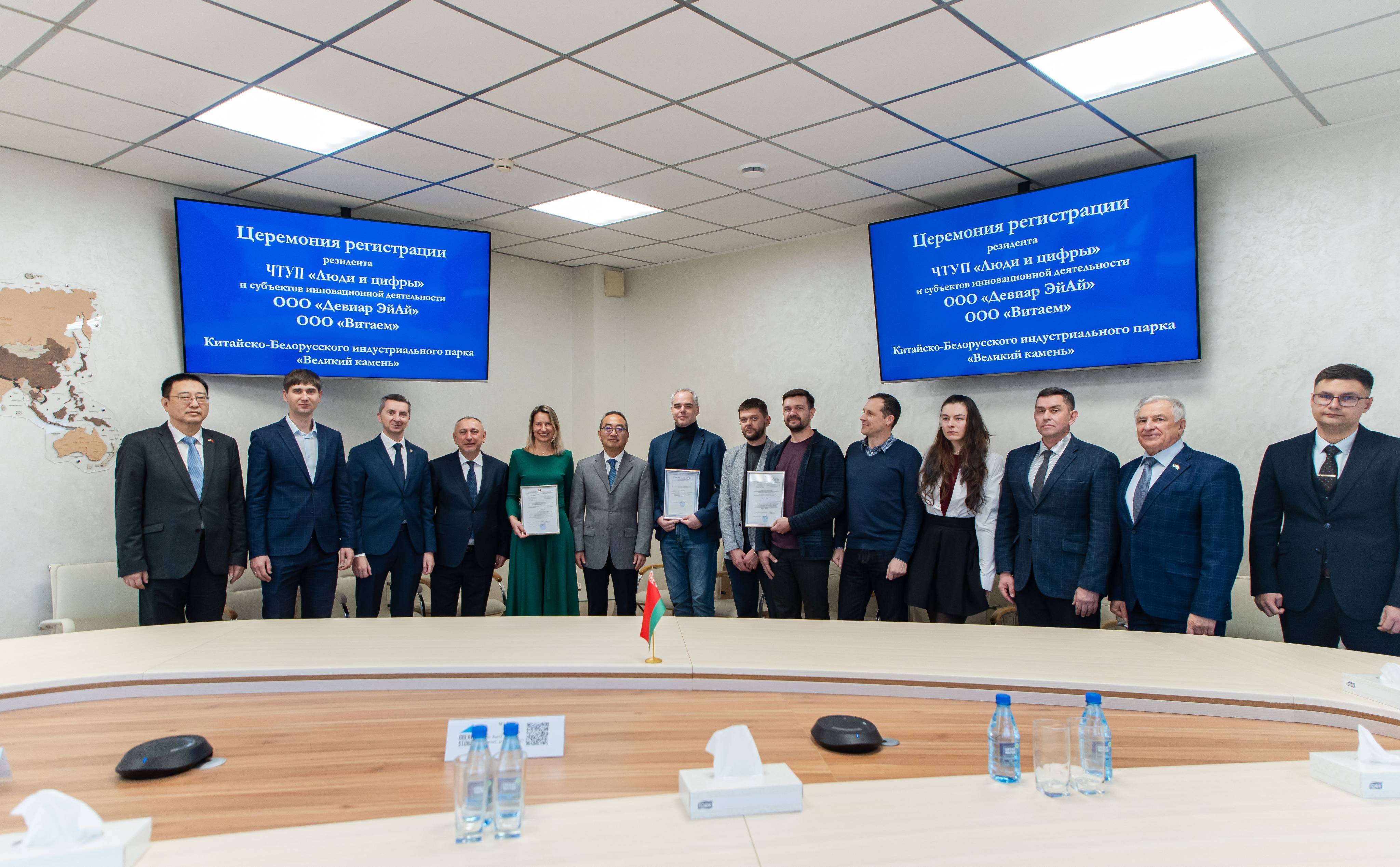2024 年11 月21 日,居民企業(yè)ЧТУП ?Люди и цифры?和創(chuàng)新活動主體ООО ?Девиар ЭйАй?、ООО ?Витаем?入駐中白工業(yè)園,園區(qū)管委會主任亞羅申科分別向三家公司負責(zé)人頒發(fā)...202411-21