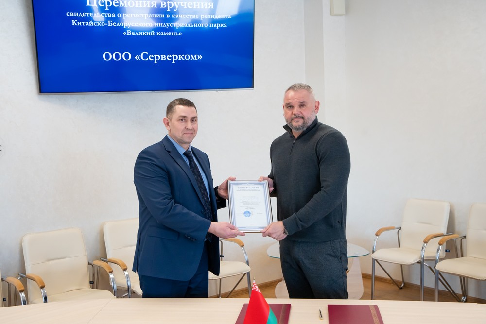 1月17日,服務(wù)器通訊有限責(zé)任公司成為中白工業(yè)園居民企業(yè),管委會(huì)第一副主任亞季莫夫與該公司總經(jīng)理聶奇米烈夫簽署入園協(xié)議,并頒發(fā)了入園證書,副主任塔巴紐霍夫、副...202401-17
