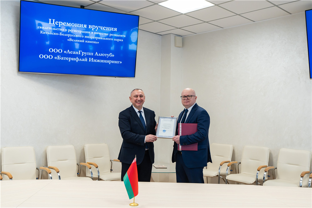 1月29日,中白工業(yè)園舉行入園儀式,列安鋁管集團(tuán)有限責(zé)任公司、充電站工程有限責(zé)任公司及初創(chuàng)企業(yè)迪來科技有限責(zé)任公司入駐園區(qū),園區(qū)管委會(huì)主任亞羅申科與列安公司總...202401-29