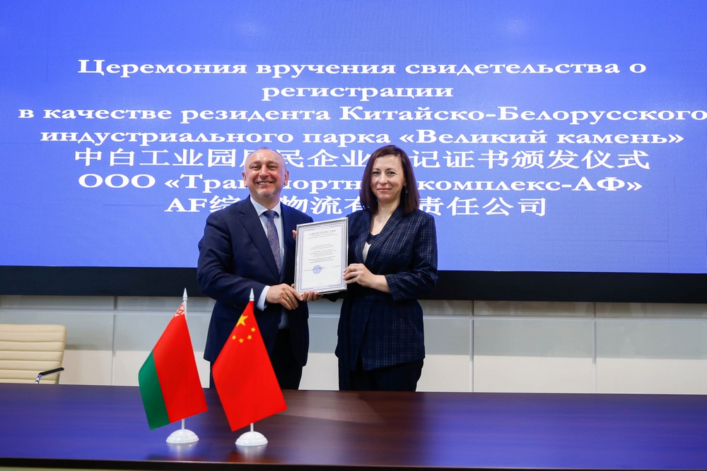 5月11日,AF綜合物流公司注冊(cè)成為中白工業(yè)園第90家居民企業(yè),園區(qū)管委會(huì)主任亞羅申科向AF綜合物流有限責(zé)任公司總會(huì)計(jì)索巴列夫斯卡婭·奧爾加頒發(fā)入園證書,開發(fā)公司總...202205-11