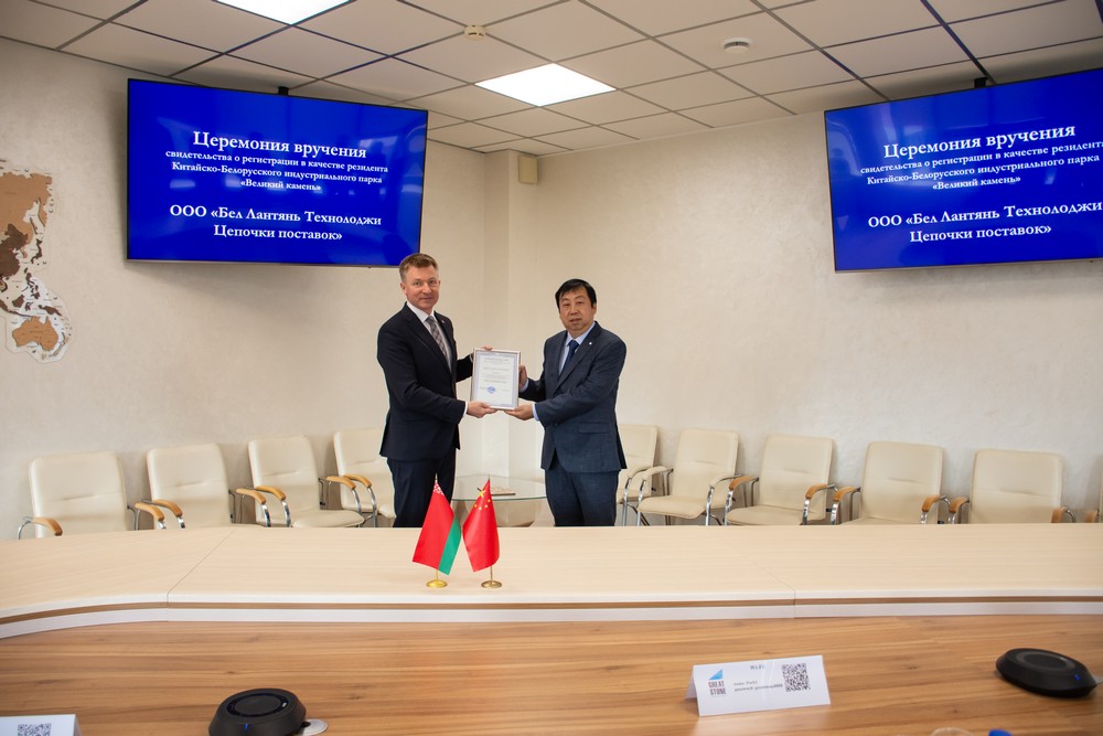 2025年10月14日,中白工業(yè)園迎來(lái)新居民企業(yè)——白俄藍(lán)天科技供應(yīng)鏈有限責(zé)任公司(中國(guó)企業(yè)投資)。入園儀式上,園區(qū)管委會(huì)第一副主任列別江采夫向企業(yè)總經(jīng)理曾濤正式頒發(fā)...202510-14