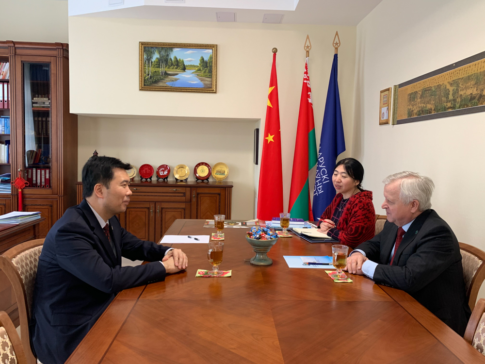 2020年2月13日,中白工業(yè)園區(qū)開發(fā)公司總經(jīng)理嚴剛在明斯克會見白俄羅斯國立大學共和國漢學孔子學院院長托吉克,就開展校企合作、慈善公益、漢語培訓等工作進行深入交流...202002-13
