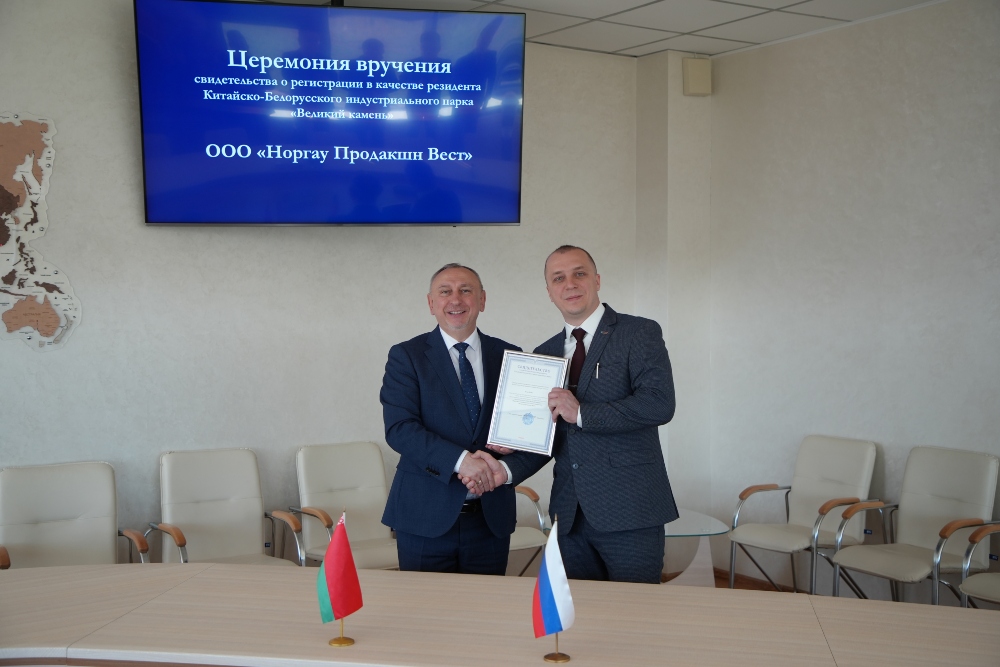 2024年5月8日,諾爾高生產西部有限公司(ООО ?Норгау Продакшн Вест?)注冊成為園區(qū)居民企業(yè),園區(qū)管委會主任亞羅申科向企業(yè)的負責人頒發(fā)入園企業(yè)證書,開發(fā)公司總經理...202405-08