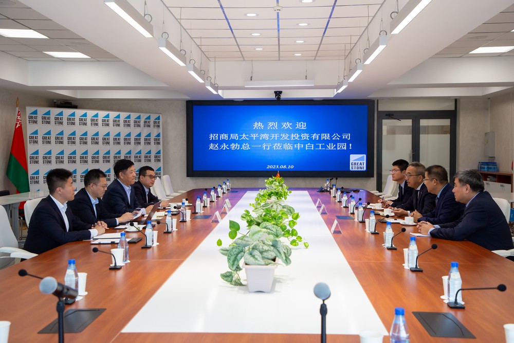 2023年8月10日上午午,招商局太平灣開(kāi)發(fā)投資有限公司副總經(jīng)理趙永勃一行考察中白工業(yè)園,與園區(qū)開(kāi)發(fā)公司總經(jīng)理李鐘漢舉行會(huì)談。會(huì)談上,李鐘漢總經(jīng)理向趙永勃副總經(jīng)理...202308-10
